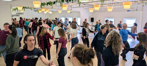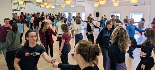 Remix Swing was founded in 2022 in Waterloo, Ontario, Canada and is located in the heart of Uptown Waterloo. We offer classes in West Coast Swing, Country Swing, Line Dance, Yoga & Fitness, Babywearing Dance, and more! At Remix Swing, we believe that dance is for everyone. Our welcoming and inclusive environment fosters a strong sense of community, allowing dancers of all levels to thrive and connect.